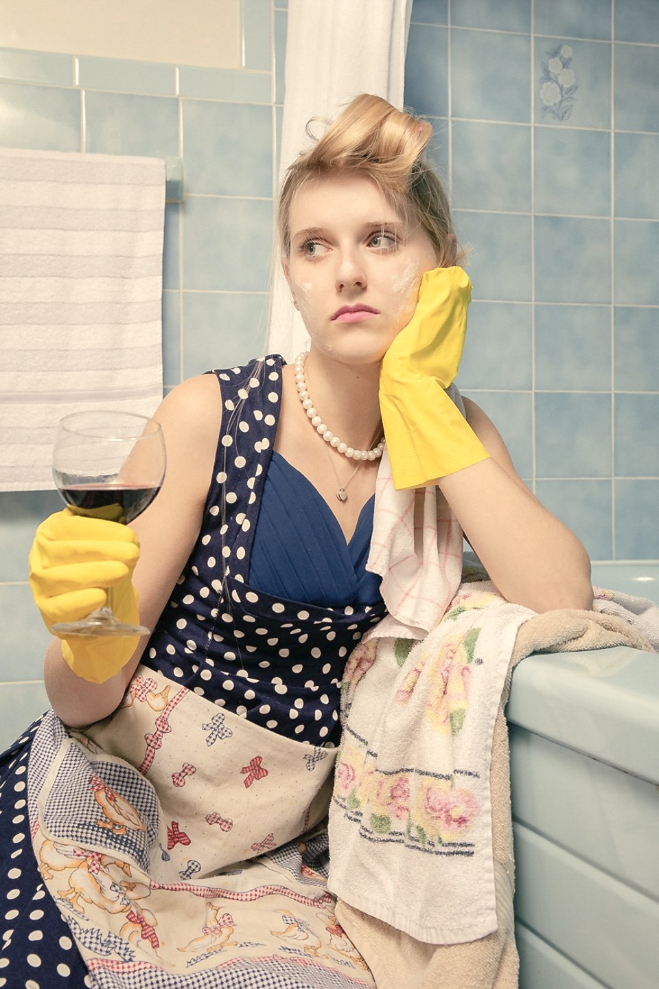 Her Perfect Version shows the idealized stereotypes of women from the 1950s to the 2000s, and how the unrealistic ideals of femininity have been glamorized, but also how these expectations leave women exhausted. Through five diptychs, I portray the constructed stereotype as well as the emotional and physical unraveling. I explore the tension between the appearance and the reality. With the staged, fashion based tableau, using styling, props, and intended lighting, the images combine editorial aesthetics with storytelling. The drastic changes in expression and atmosphere reveal the emotional and physical exhaustion of the ideals.