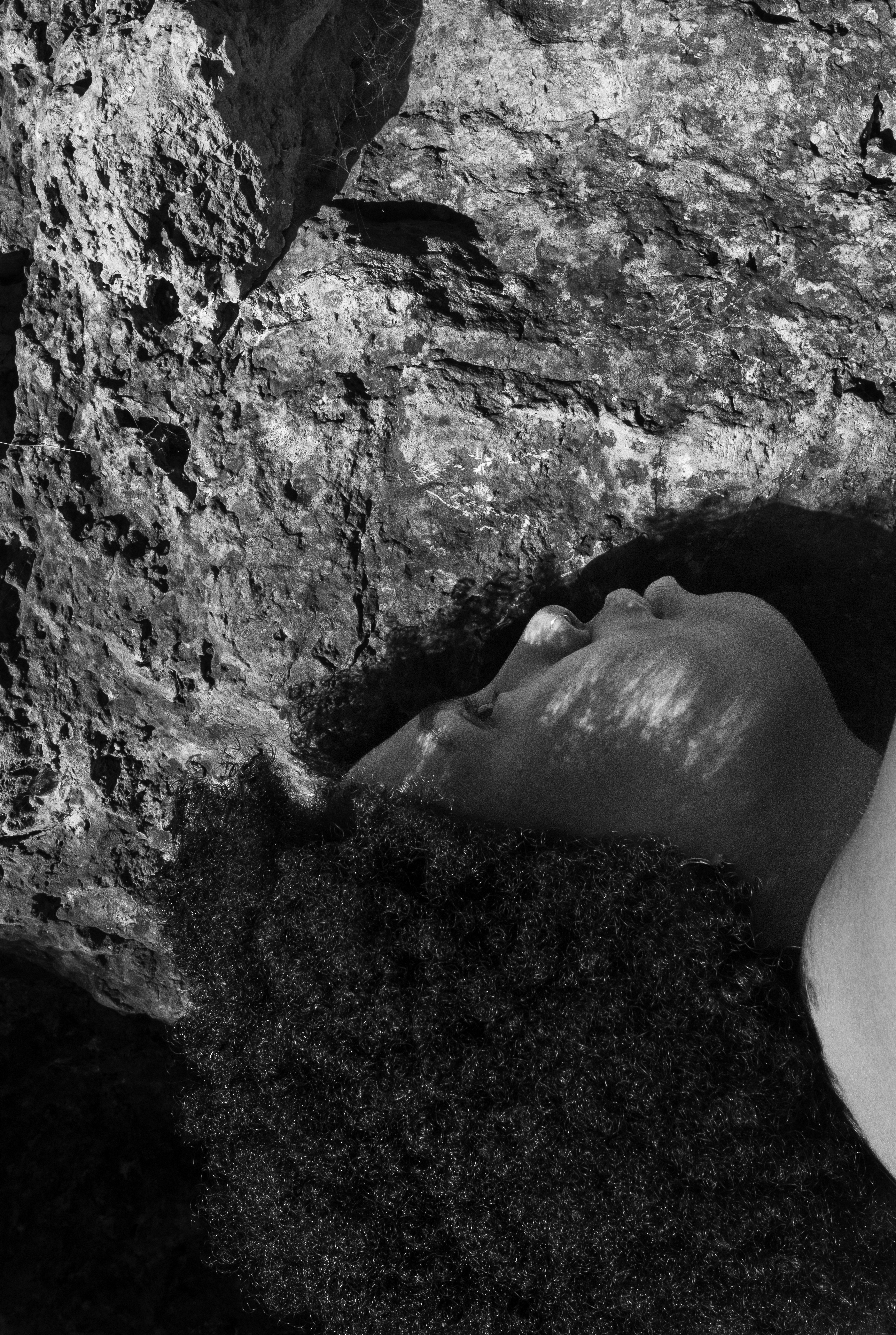 Turning To Stone (named after the book by Marcia Bjornerud) aims to recontextualize women in natural settings. Offering an alternative visual representation of the woman-earth relationship– one that’s chiseled and angular form is often reserved for masculine representations.