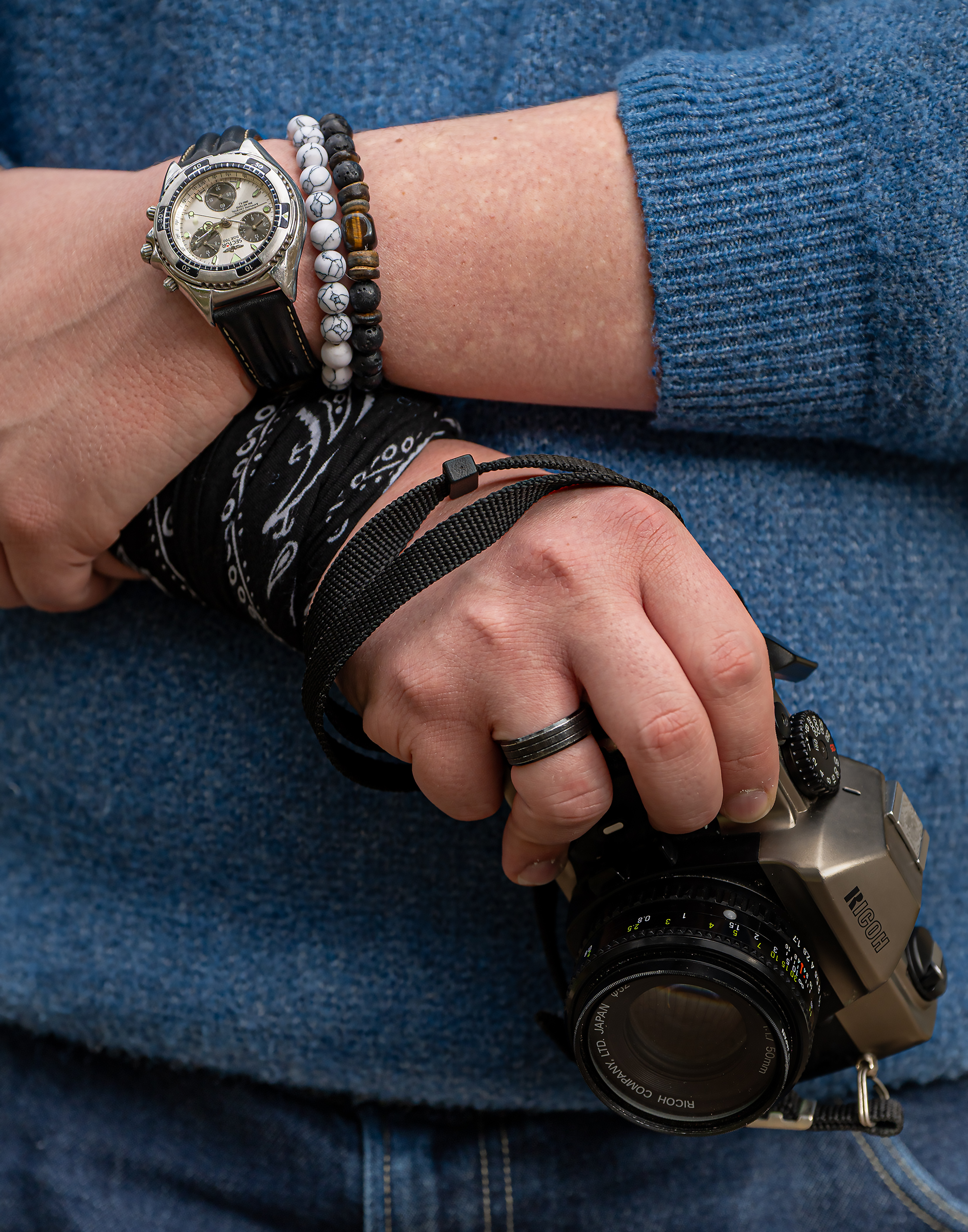 Second Faces explores how people express themselves through their hands and arms. Photographing accessories, tattoos, and nail styles, the series examines how hands can function as a second face — revealing personality, history, and identity in ways that are easy to overlook. Each subject was photographed in a location of their own choosing, grounding the images in spaces that carry personal meaning and deepening the connection between person and place.